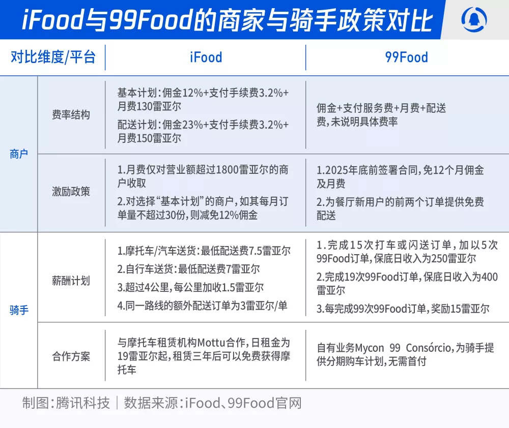 迫于竞争压力,iFood在今年6月开始实行新的配送费标准:对摩托车或汽车配送的最低收费为7.5雷亚尔,但这离骑手所要求的“最低收费上涨为10雷亚尔”仍有差距。99Food的配送政策则明显是为了鼓励更多骑手加入外卖大军:如果骑手在一天内完成15次99Food配送,保底日薪为400雷亚尔。