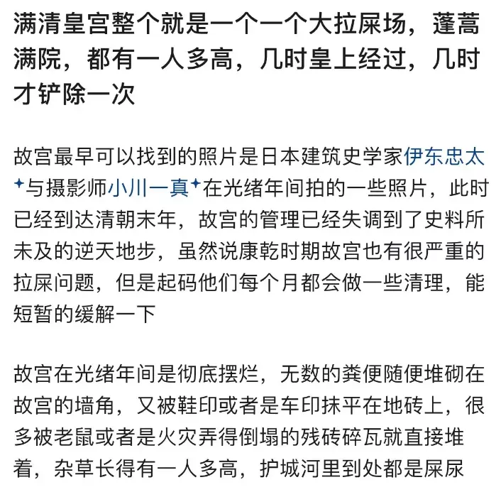 这就是百年前故宫真实的样子,它不是一直都这么庄严神圣的,在很长一段时间里,它是脏乱差的集中体现,甚至成为各色人士随意进去的场所,跟所谓的神圣一点也挂不上钩。