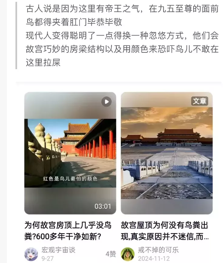 然而,网友们通过历史记载和照片,看出了故宫的真实一面,首先直接戳破了鸟类不敢在故宫房顶上拉屎的传闻。