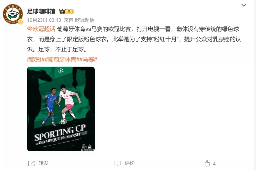体育赛事亦成为重要阵地,在最近的一场欧冠比赛中,有球队穿上了限定的粉色球衣,赛场上跃动的粉色,既是视觉符号,更暗含“运动促进康复”的理念,让患者看到,疾病从未定义她们的活力。