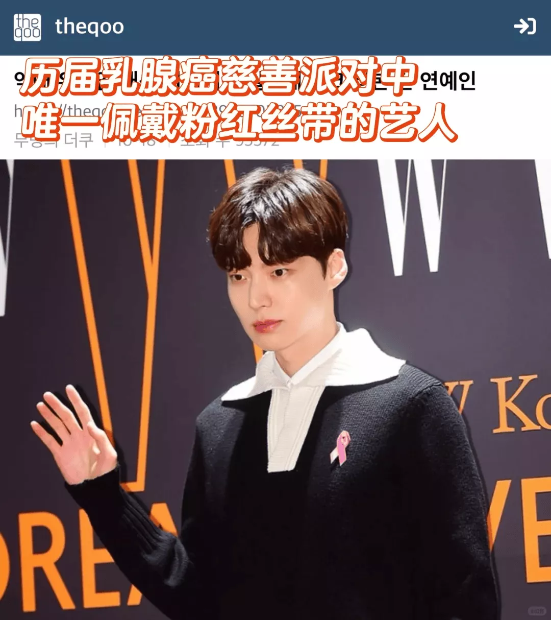 韩网网友更是进一步扒出,多年来出席这场晚宴地众多明星中,只有男演员安宰贤胸前佩戴了粉丝带。