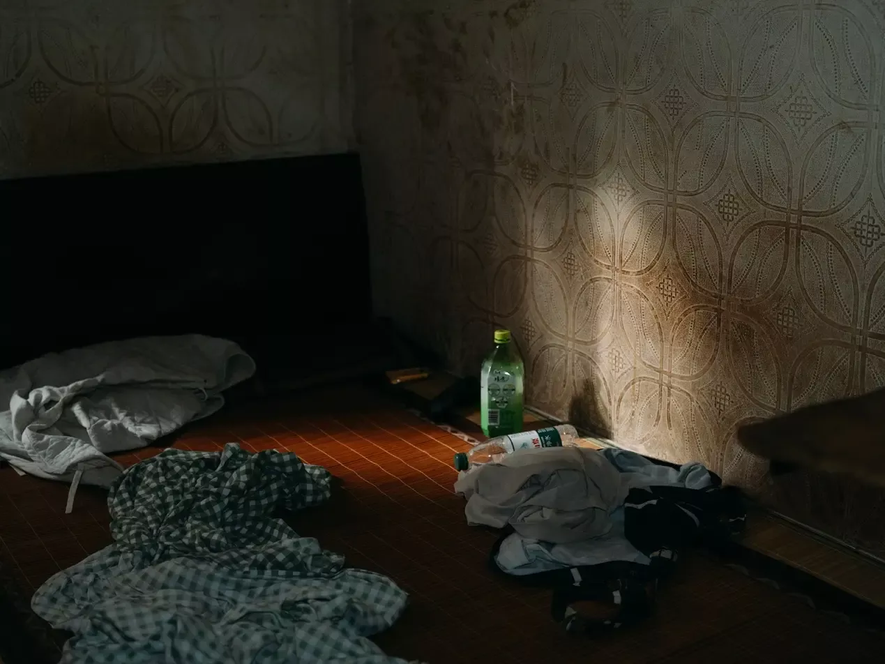 旅店是三层老房子,穿过店外走廊进入客厅,白炽灯积了厚厚的油灰。桌上摆着前晚的剩菜,冰箱发出沉闷的嗡嗡声。时不时老鼠从角落里蹿出,又躲进了厨房。不到十平米的房间,弥漫着复杂的气味——墙皮渗出的霉味,厨房的饭菜味,还有经年不散的烟味。