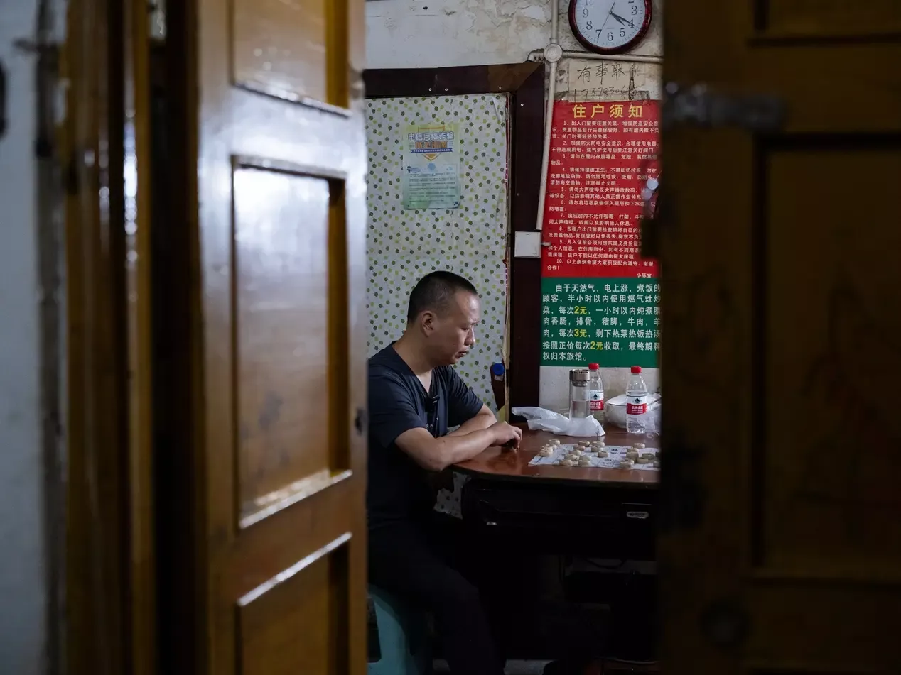 刘少杰今年39岁,在重庆的汽配厂里做临时工,断断续续干了十多年。他形容自己是“半个工人、半个闲人”,有活就干,没活就歇着。旅店是他的第二个家。
