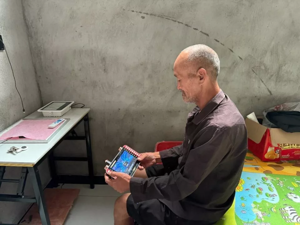 ●寇聚合用家人买的视频播放器看节目。李晓芳 摄