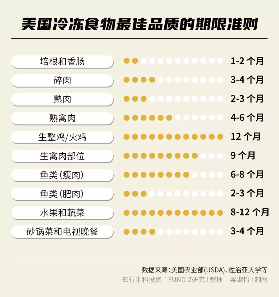 这种制度设计下,冷冻食品在标识的保质期内一般安全,口感风味另议。甚至过期了几天乃至数周,只要保持低温储藏,也问题不大。因为企业对保质期已预留了一定的安全垫与缓冲期。