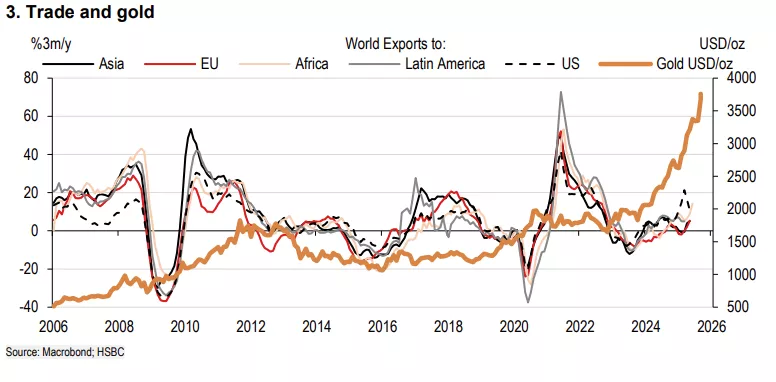 尽管上周五的贸易局势升级短暂加剧了避险情绪,但经济政策与地缘政治不确定性指标的下降趋势并未扭转。汇丰银行表示,如果明年全球军事或贸易紧张局势缓解,那可能最终拖累金价。