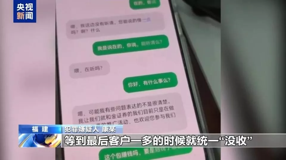康某:看到盘口金额不怎么大,我就提了几点建议给他们。采取一种拉群的方法,把所有加的客户全部拉到一个群里面,模式跟传销一样。包装、引流、拉群、下载App,等到最后客户一多的时候就统一“没收”。