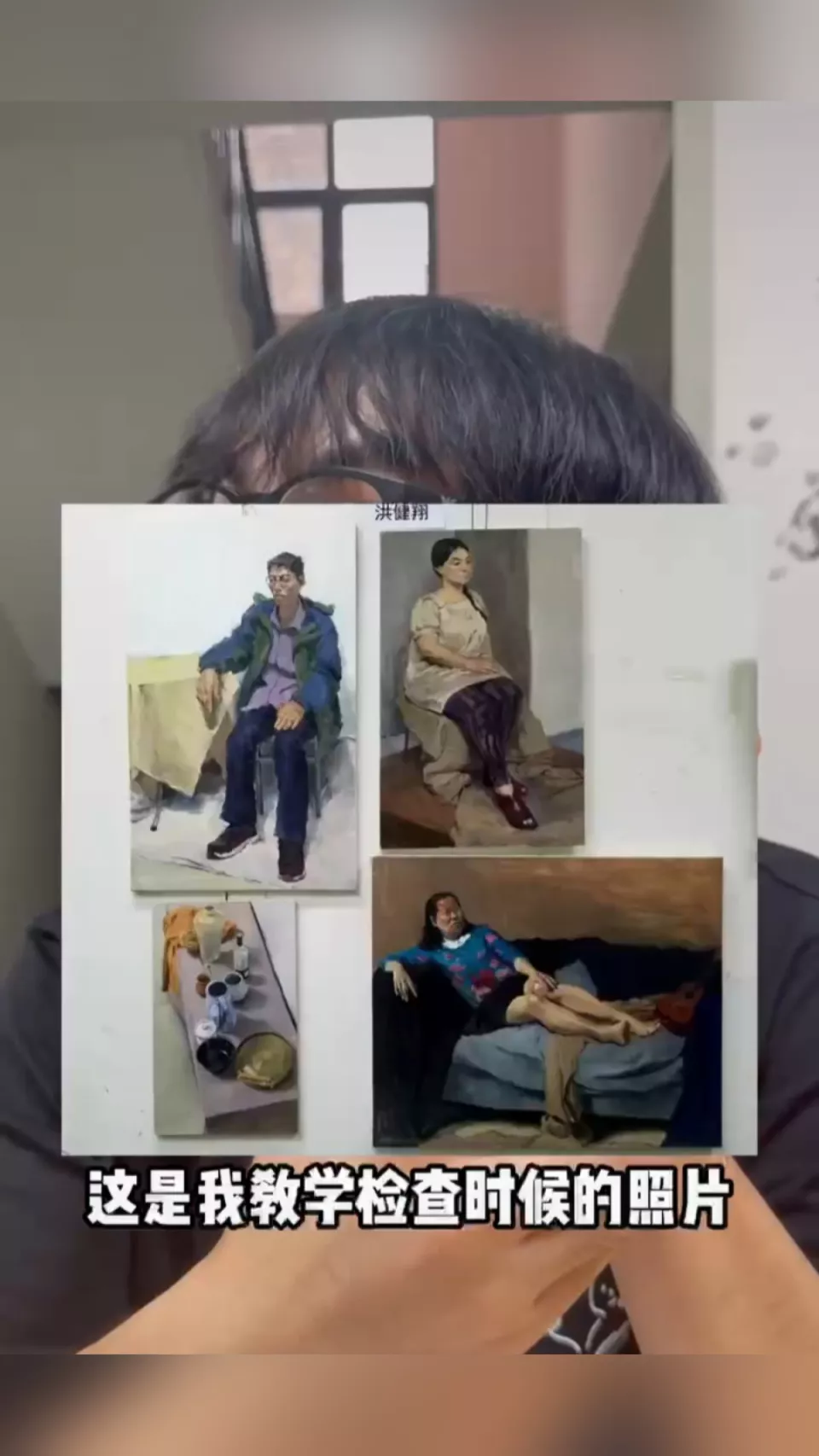 10月14日,博主“想想工作室”发布视频称,这幅画是工作室成员洪健翔就读于中央美院时,在大一课堂上的作业作品,并出示了教学检查时的画作照片,以及创作时的照片等。视频中,洪健翔称,这是他在大一基础部画的,当时为了找到这个特殊角度,是特意站在桌子上画的。