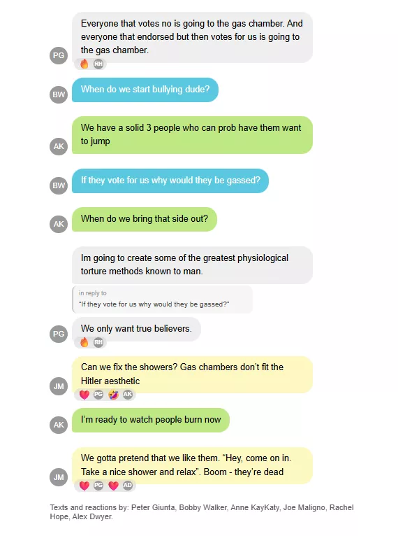 这2,900页的记录,包括差不多10几个千禧一代和Z世代共和党成员的聊天,从一月初到八月中旬,记载了他们争夺全国青年共和党组织控制权,试图以强硬的亲特朗普立场掌权的过程。