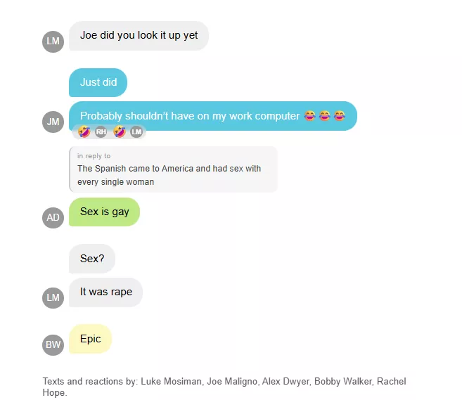 聊天记录,时长七个多月,记录了纽约、堪萨斯、亚利桑那和佛蒙特州的青年共和党领导人之间的消息,为外界提供了一个未经过滤的视角,让人看到新一代共和党活动者在以为没人听见时的谈话方式是什么样的。