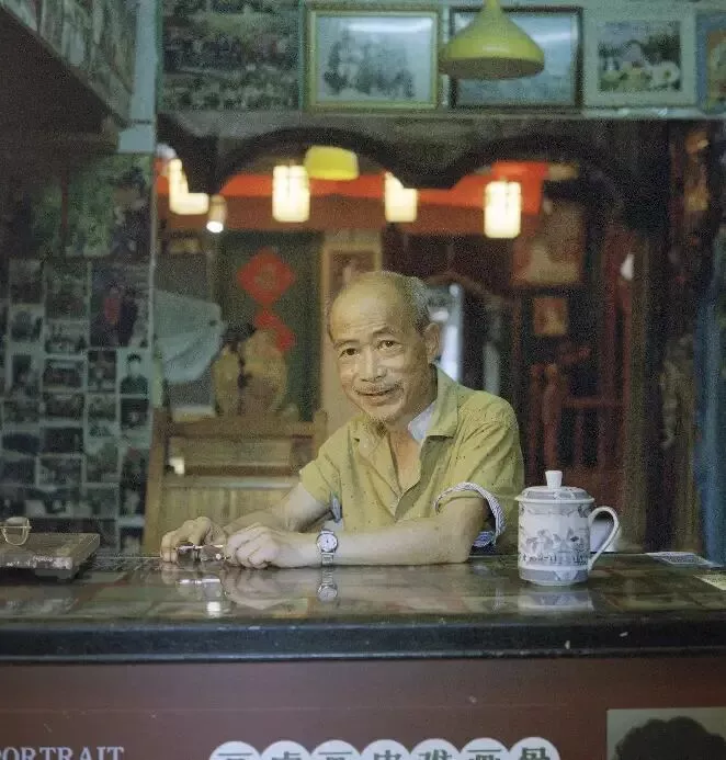 柜台后的周泉虎是照相馆里的另一个标志,这个身形瘦小,脾气有点古怪的老人在25岁那年被师傅喊去帮忙,此后一辈子没离开过三墩照相馆。