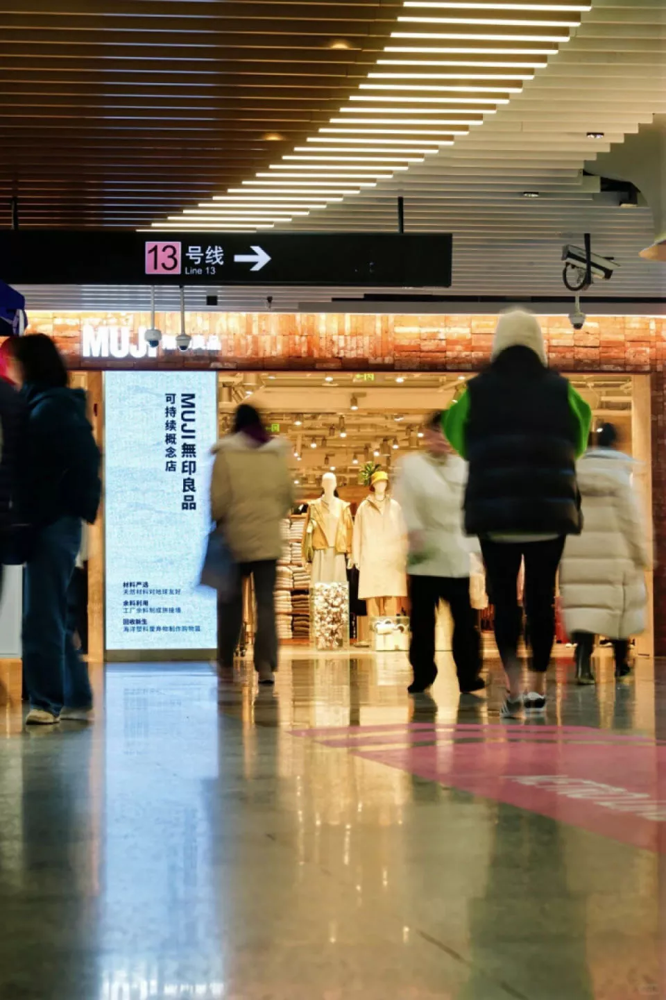 原本地铁通道的开发一般是“通道+两侧店铺”,而MUJI将整家品牌店排列在地铁通道两侧,以柱子为区隔,进行“单元化”的品类划分。这样既保留了地铁通道的职能,又保证顾客能获得清晰且舒适的购物体验。