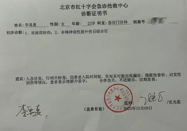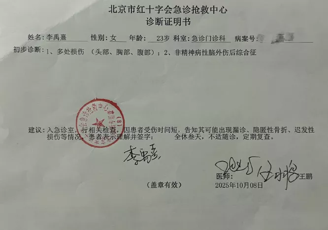李禹熹一并晒出的还有自己报警的立案回执和验伤报告。