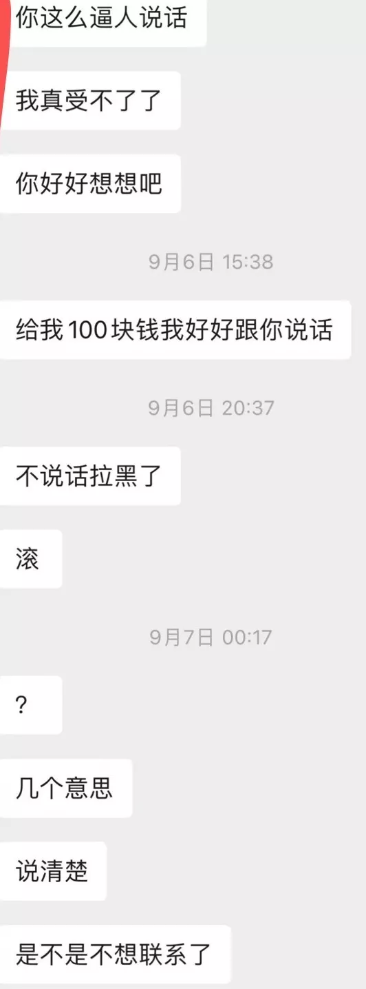 李禹熹认为荣梓杉是冷暴力,两个人之间出现问题,而荣梓杉的沟通话语只有各种骂人的话,并称:“给我100块钱我好好跟你说话。”