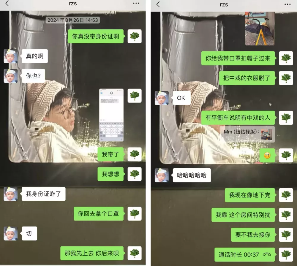 几天后的8月26日,他们的微信聊天记录已经开始商量开房间的事情,李禹熹叫荣梓杉是“老公大人”。