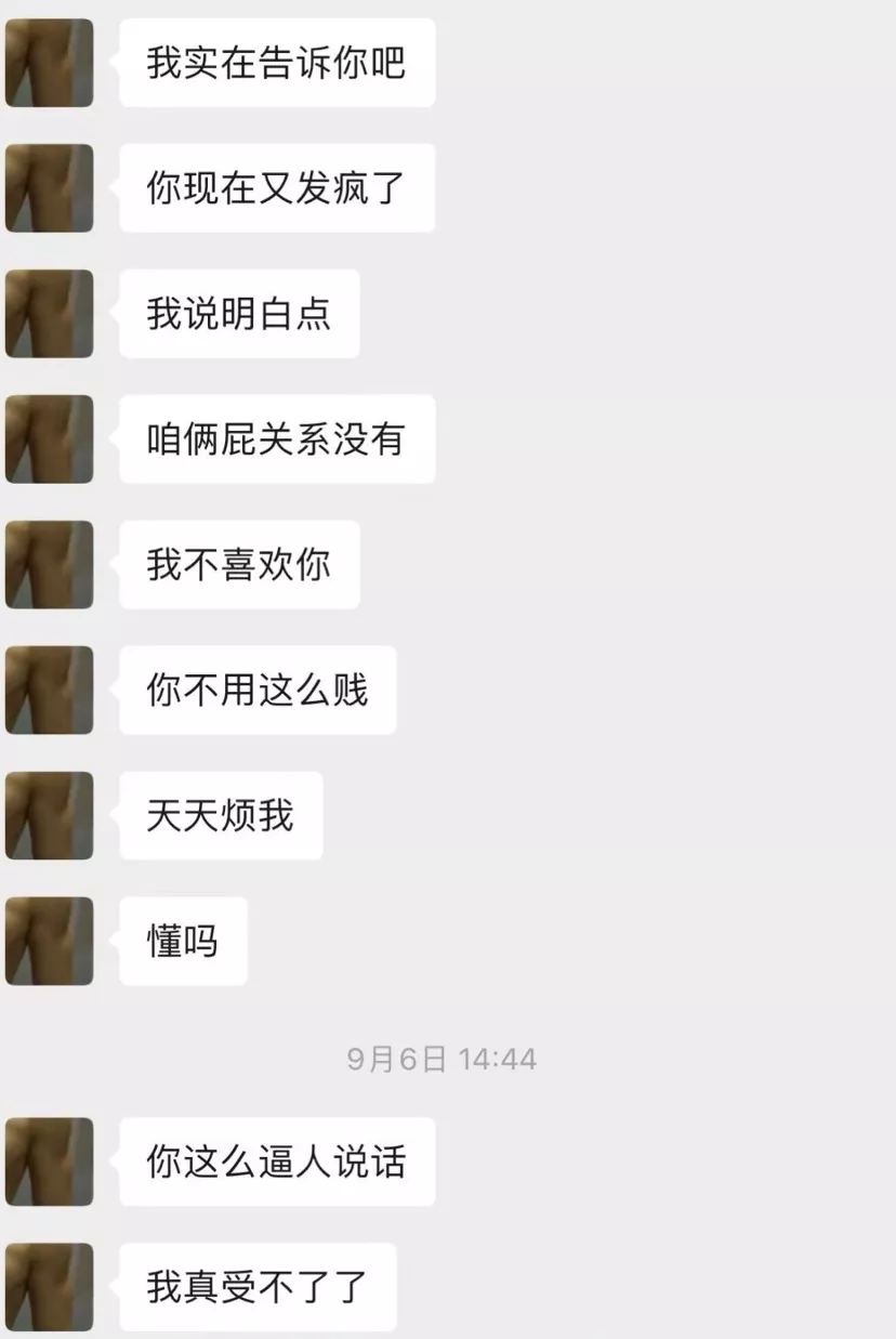 更恶劣的是荣梓杉把小号微信头像换成李禹熹的私密照片来逼李禹熹回复,下图马赛克掉的部分就是用女生私密照片当头像的。