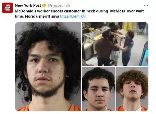 美国佛罗里达州波克郡(Polk County)一间位于达文波特(Davenport)的麦当劳餐厅,20日凌晨惊传枪击事件。警方指出,一名店员与两名顾客因得来速(Drive-Thru)点餐纠纷爆发争执,最终演变成肢体冲突与开枪事件,造成一人颈部中弹,三人目前均遭起诉。