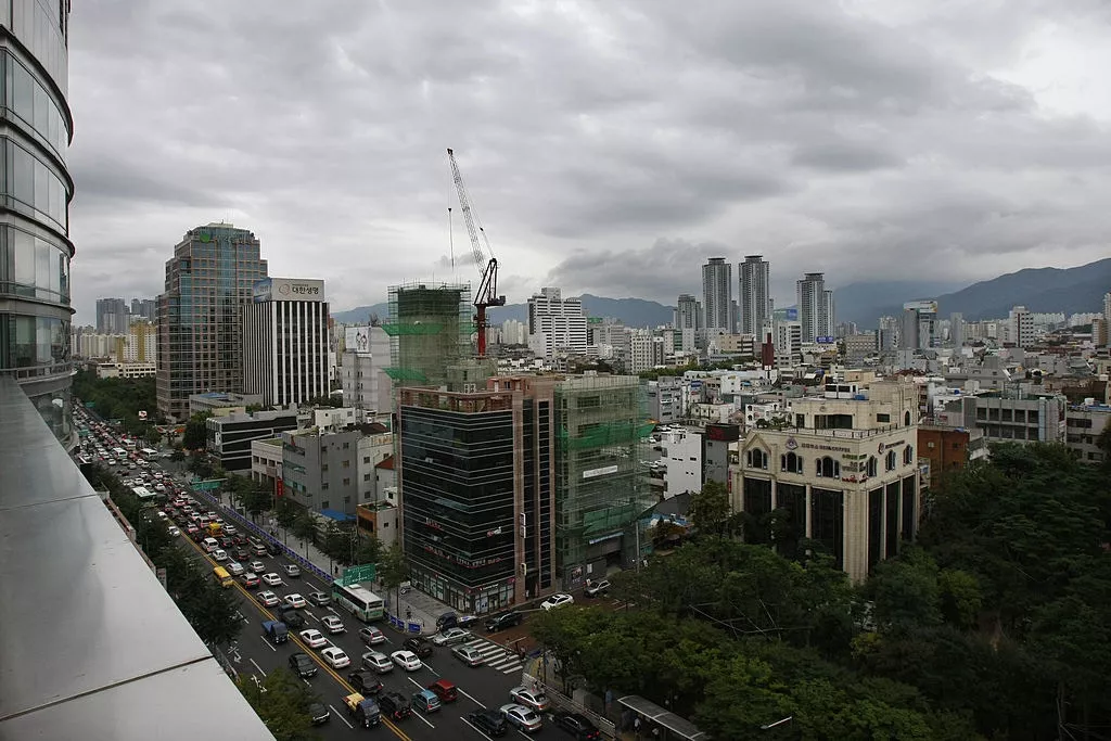 韩国经济.韩国楼市.韩国物业.韩国买楼.韩国租金.韩国大邱:2011年8月26日,韩国大邱市中心的一个小公园附近的景色。(Reuters)
