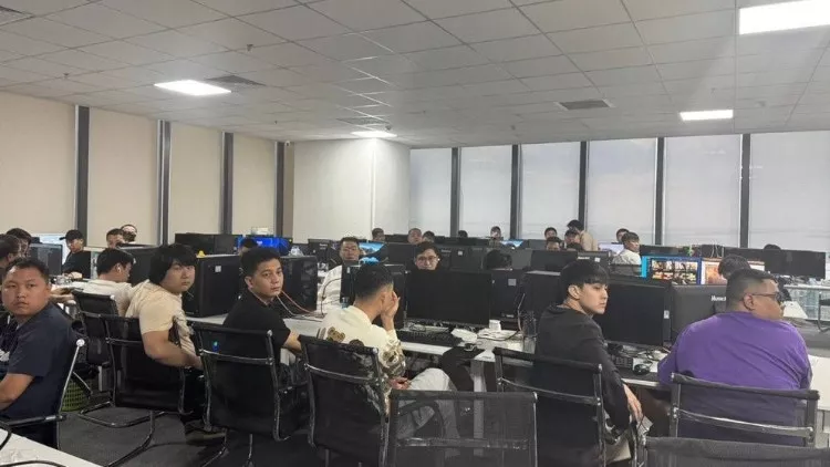 2025年10月11日,柬埔寨警方捣毁金边一处网络诈骗窝点,逮捕80名涉案人员。(柬中时报)