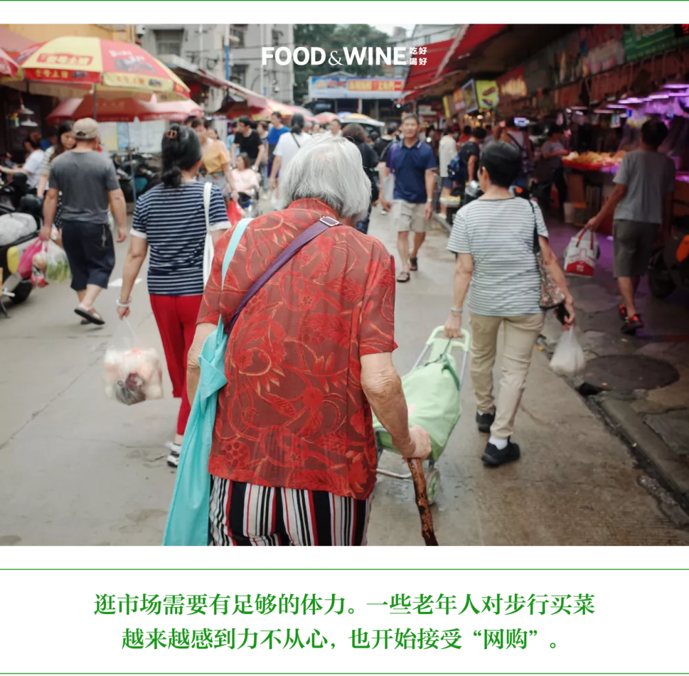 小时左右,买菜和散步合二为一。随着年龄越来越大,他对步行买菜这项工作越来越感到力不从心,于是渐渐有了新选择。「一两年前开始网购,以前不知道,后来儿媳告诉我有这个渠道。有一个博主耐心地教我(社区网购),而且家所在的社区就有提货点,慢慢就习惯了网购。社区团购只是买水果、百货、早餐。现在已经很少去沙园市场买菜。」他说。