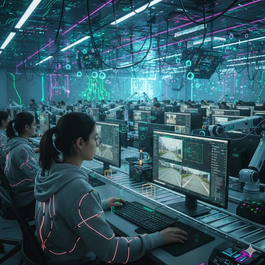 Go,号称顶尖计算机视觉,结果背后是1000多个印度员工盯着摄像头手动确认。多伦多街上的网红送餐机器人,背后也是菲律宾打工人在半夜操控。