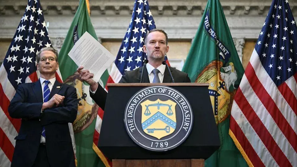 回到美国财政部的现金大厅,这个装潢华丽、使用七种大理石并镶有大量金色细节的空间内,美国财政部长贝森特又发表了一项耐人寻味的声明。