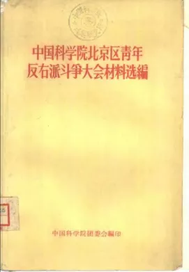 中科院反右与北京的其他重点高校一样,留下了文献记录。第一个记录是《中国科学院北京区青年反右派斗争大会材料选编》,由中国科学院团委会编印,1957年12月印出。