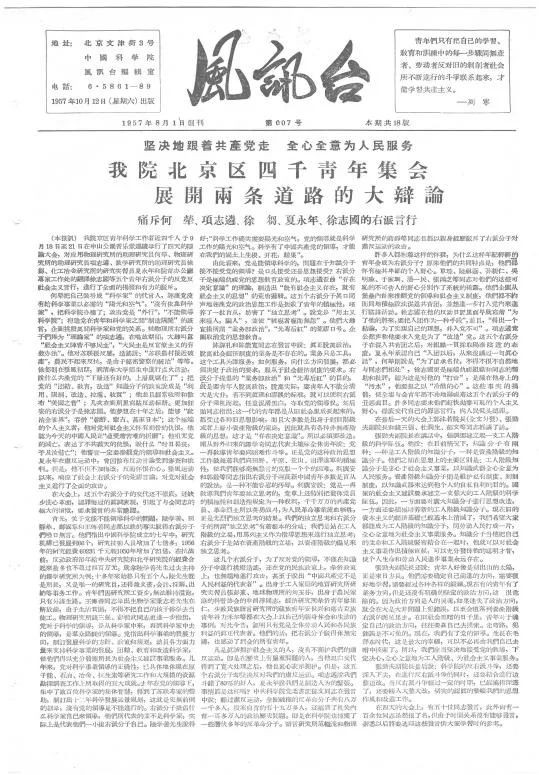 这个通知吹响了斗争号角,此后两个月里,中科院针对自然科学家的反右,不仅被动员起来,而且取得了标志性的战果。