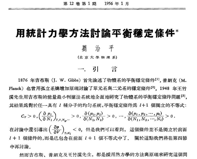 刘治平,第一次听说这个名字是在中国科技大学物理学教授顾雁先生那里。顾雁,北京大学物理系五二级,刘治平是他的同班同学,曾和他一起在著名理论物理学家王竹溪教授指导下完成毕业论文。