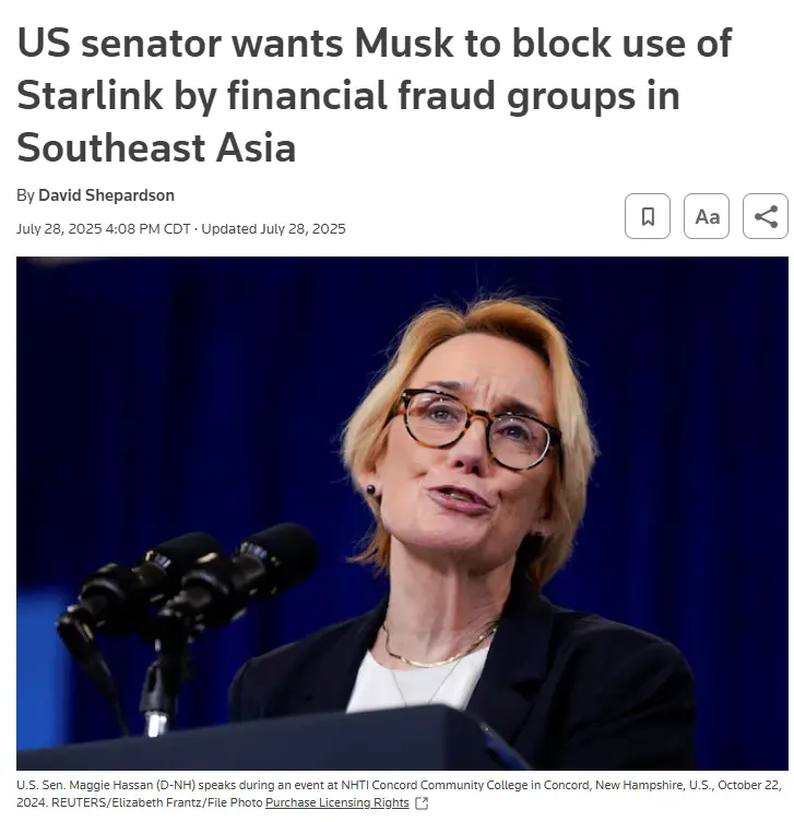随着证据浮出水面,美国司法部(DOJ)与国土安全调查局(HSI)向SpaceX发出安全通报,要求其配合调查并切断可疑信号。几乎在同一时间,缅甸军方也突袭了多处诈骗园区,并在现场缴获了大量Starlink终端设备。