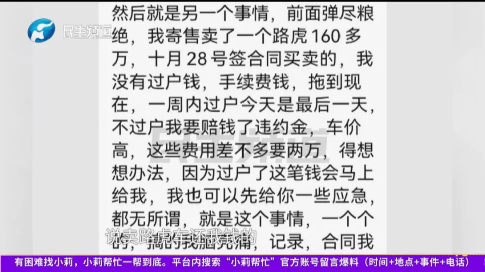 韩女士表示,从去年的8月份到10月1号,雇主一直以这个理由隔三岔五说要交保证金,希望自己能帮帮他们。“刚开始我也没钱,他们骗我给他们弄网贷,还卖路虎车说还钱,又骗了我十几万!”