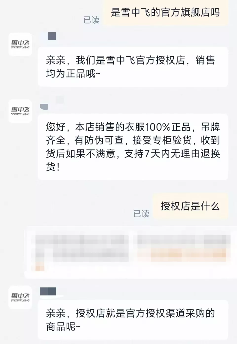 电商平台是雪中飞羽绒服的销售渠道之一,红星资本局注意到,在电商平台上,雪中飞羽绒服的售价普遍在369-869元之间。除雪中飞官方旗舰店之外,还有多个以雪中飞命名的店铺,包括SNOWFLYING雪中飞旗舰店、雪中飞官方奥莱旗舰店、雪中飞女装旗舰店、雪中飞户外旗舰店等。这些旗舰店与官方旗舰店的运营主体并不一致,多家店铺客服表示,是雪中飞品牌授权店,通过官方授权渠道采购商品,销售产品均为正品。