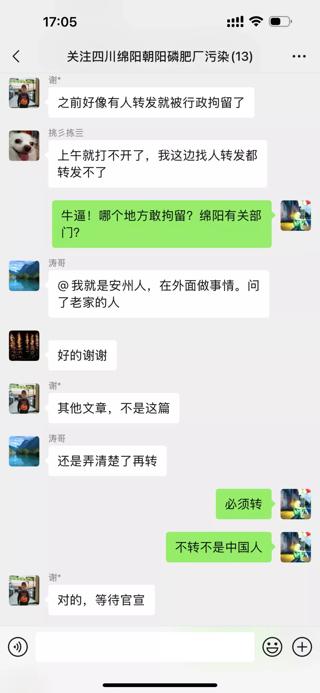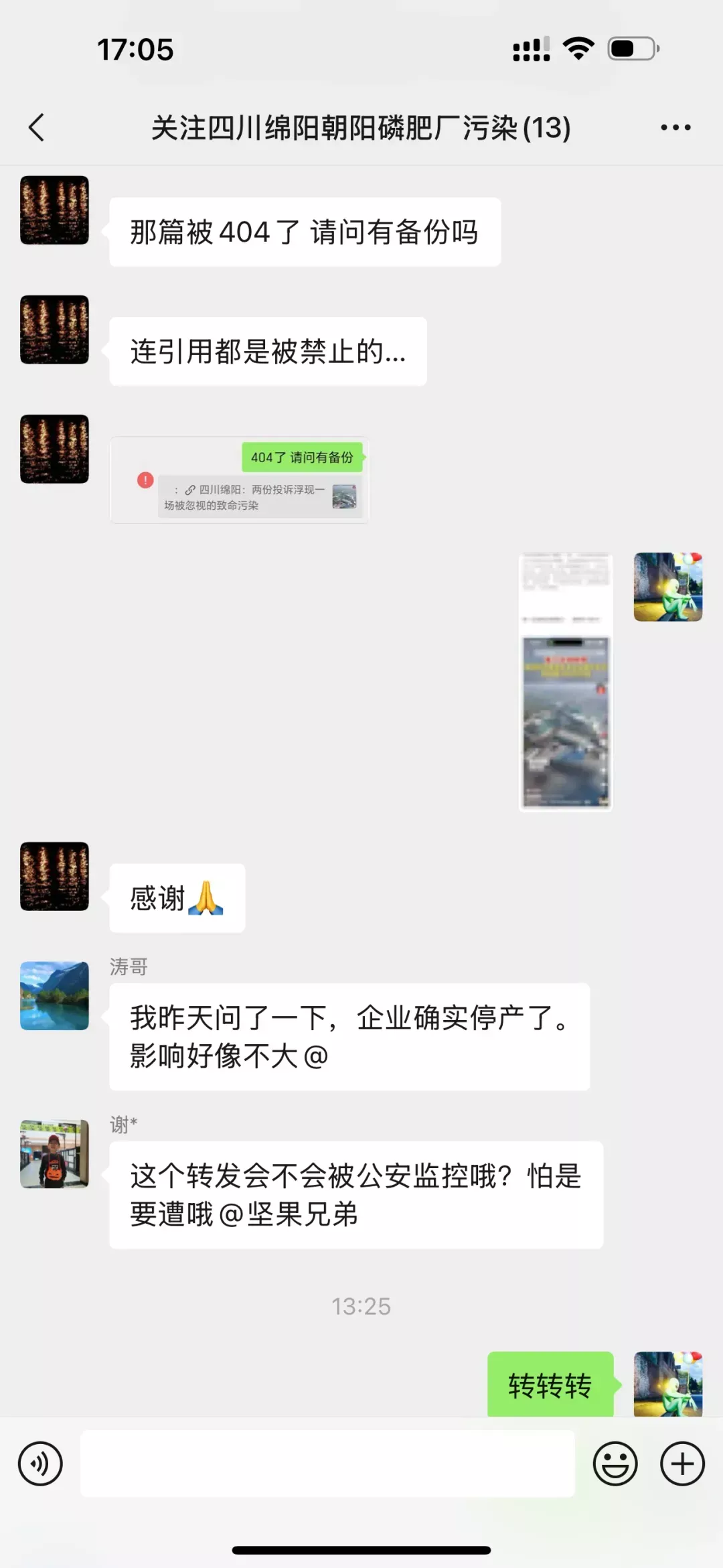 这680次点击,像是一场幽灵放映。大多数人甚至来不及看清内容,屏幕上的文字就已经化为乌有。没有想到,在这篇短暂的文章里附上的微信群的二维码“关注四川绵阳朝阳磷肥厂污染”,因此拉开一场大戏帷幕……
