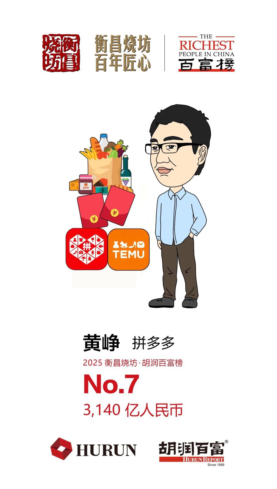 45岁的黄峥财富比去年增长690亿元(+28%),至3140亿元,仍滑落三位至第七。拼多多今年上半年总营收1997亿元,同比增长8.6%,增速显著回落;净利润455亿元,同比下降24%,主因“千亿扶持”计划、Temu海外扩张及物流补贴等推高成本,竞争加剧。