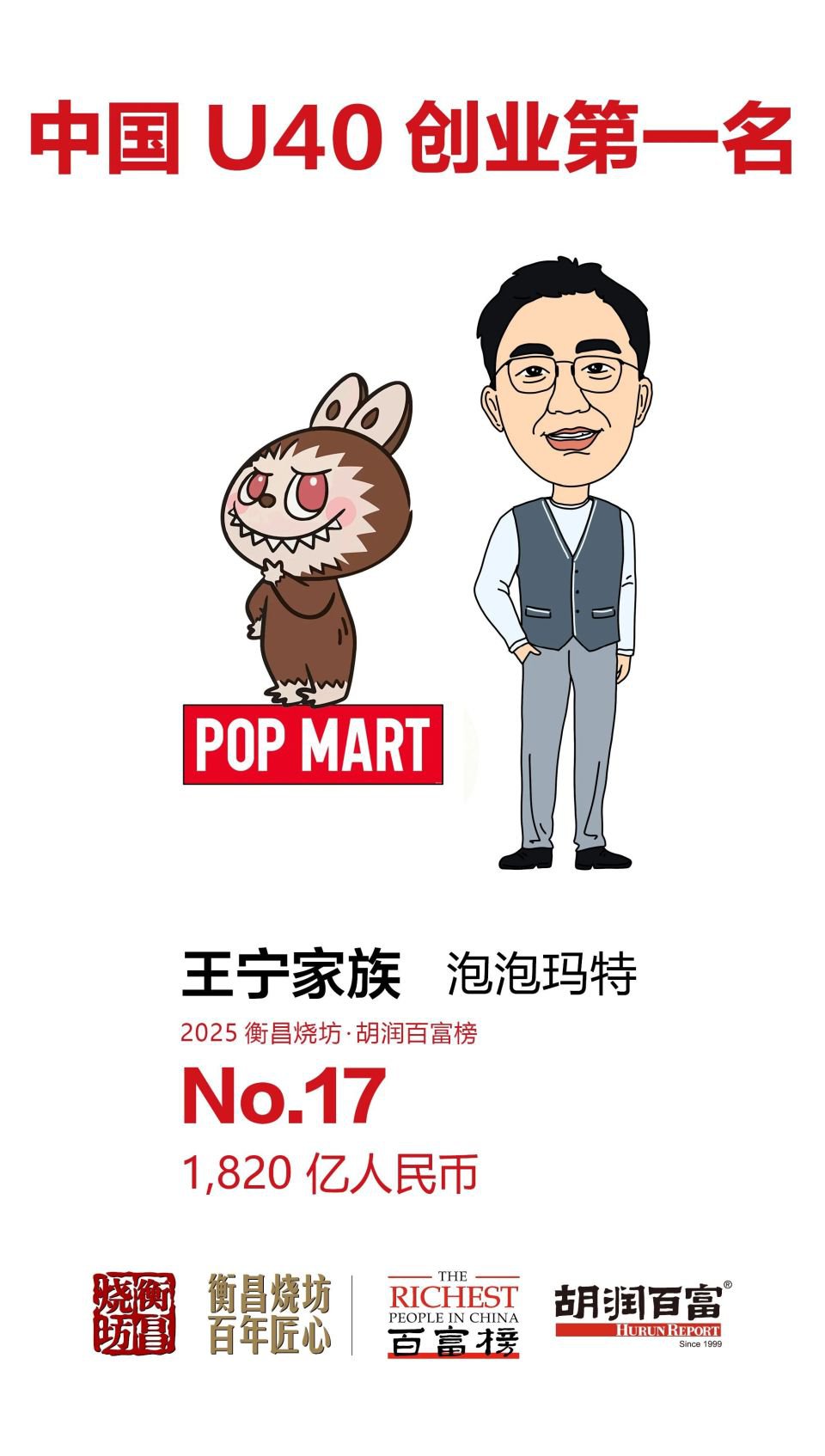 小米的雷军成为“增长王”,财富比去年增长1960亿元,主要得益于小米汽车业务的爆发式增长和手机高端化突破带来的盈利跃升;其他增长较快的企业家还包括泡泡玛特38岁的王宁,凭借Labubu全球爆红,财富增长1545亿元;寒武纪40岁的陈天石则凭AI芯片落地加速,业绩增长迅速,8月底股价一度超越茅台,财富增长1480亿元。
