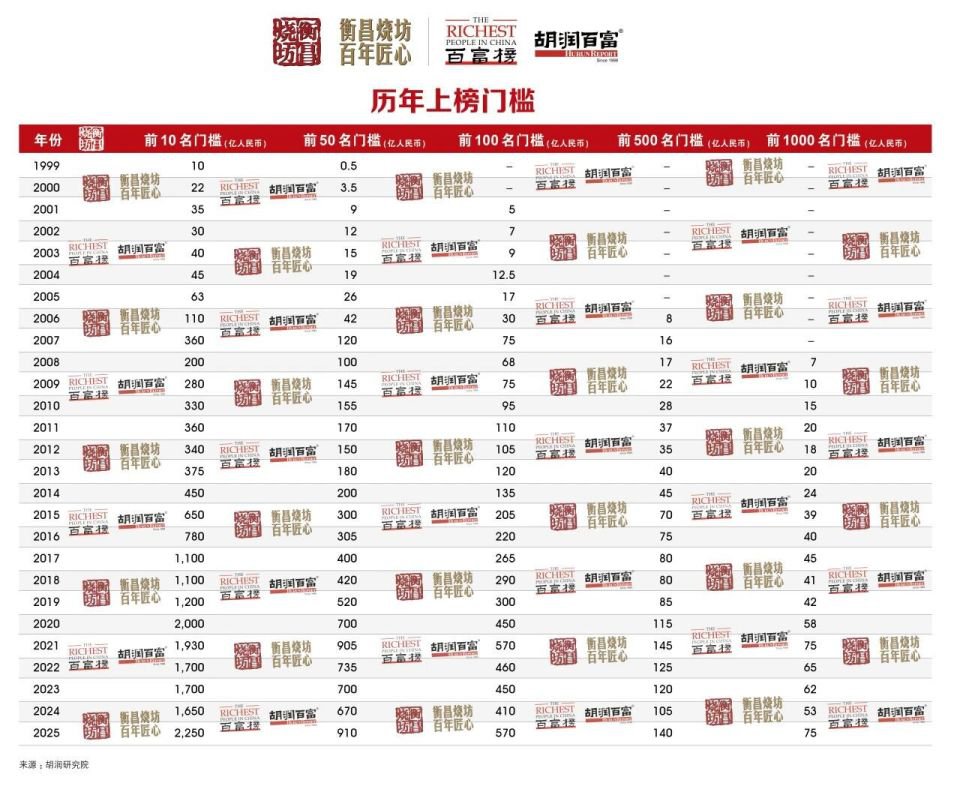 2025)。今年是胡润研究院自1999年以来连续第27次发布“胡润百富榜”,财富计算截止日期为2025年9月1日。