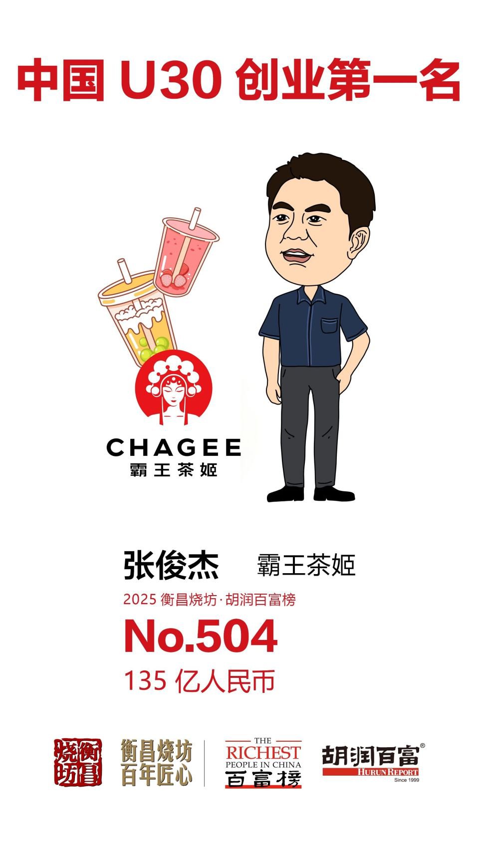 “上榜企业家中,唯一一位U30创业者是95后——霸王茶姬30岁的张俊杰,财富135亿元。你或许会以为他是一位学霸或创二代,实际上,他10岁父母离世,经历7年流浪生活,18岁才开始学习写字,22岁时创办了如今的霸王茶姬。此外,U30群体中还有18位继承财富者。U35群体中,有7位白手创业者,其中影石34岁的刘靖康是U35白手创业第一名,他创造了一个价值超过1000亿元的企业;新茶饮赛道贡献了2位——喜茶34岁的聂云宸、Manner咖啡32岁的陆剑霞,此外还有大模型Kimi创始人32岁的杨植麟、居住在新加坡的加密货币领域35岁的孙宇晨,以及在美国创办人力资源支付平台Deel的35岁的王硕。U35群体中另有49位继承财富者。U40群体包含40位白手创业者,泡泡玛特38岁的王宁是U40白手创业第一名,寒武纪40岁的陈天石、古茗39岁的王云安等也在其中;同时,U40群体还有124位继承财富者。”