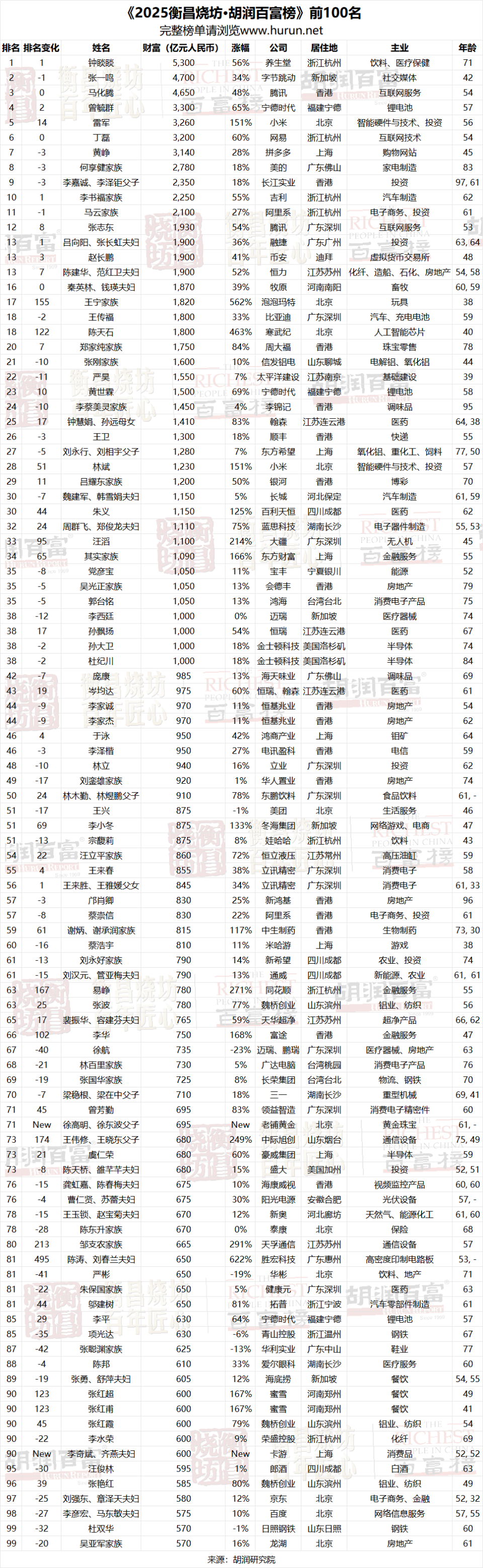 《2025衡昌烧坊·胡润百富榜》出炉:新质生产力企业家集体浮出水面