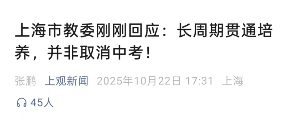 与此同时,舆论场上不少声音将“贯通高中”夸大和误读为“试点取消中考”,以致10月22日,成都、上海两地教育主管部门先后辟谣。