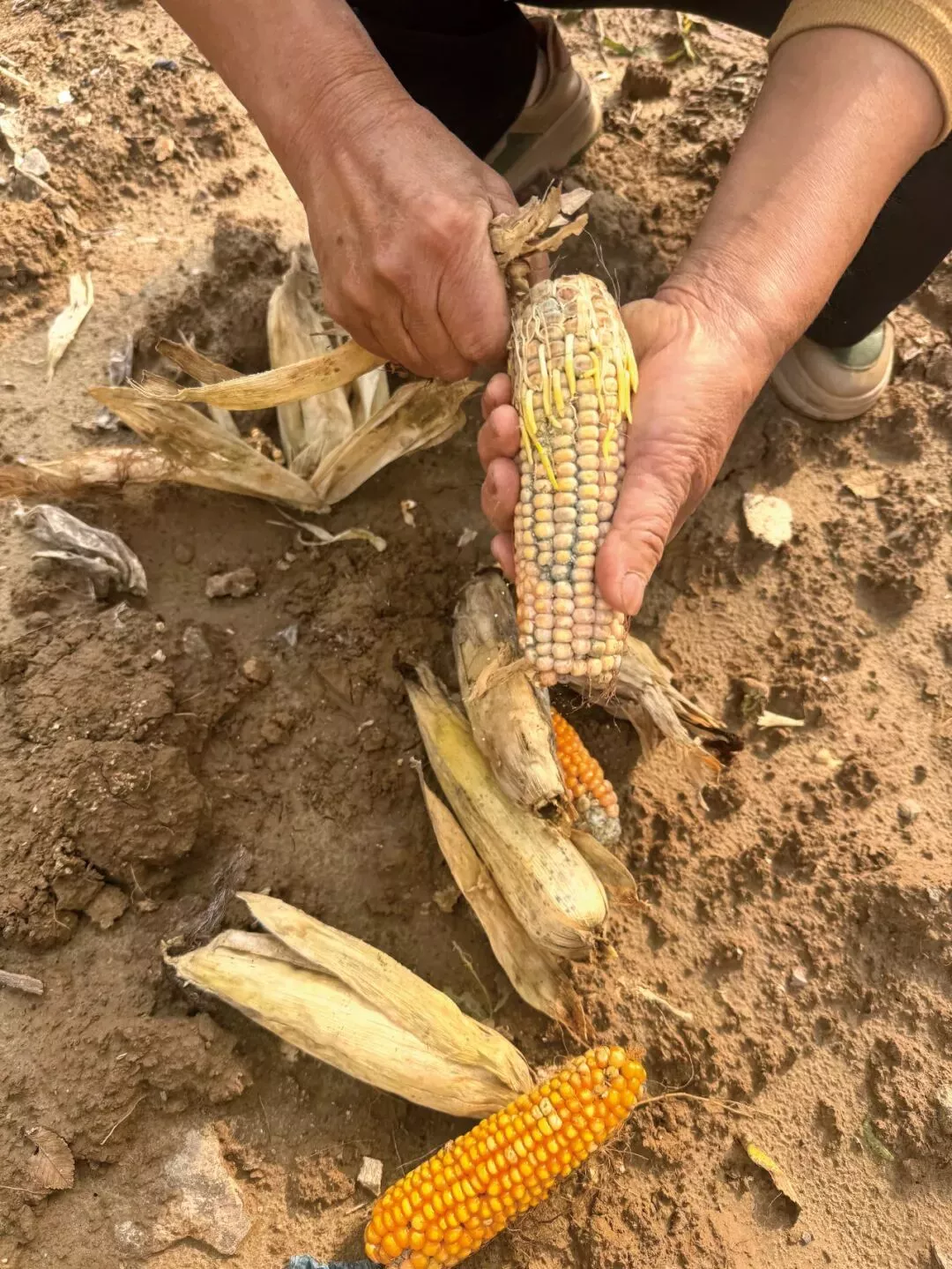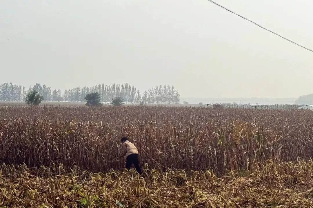 张梅终于等来了一个晴天。玉米地里,收割机轰隆作响,她弯腰捡起一个玉米棒子——个头小了些,但颗粒金黄,揣进兜里,另一只手拿着空的化肥袋。
