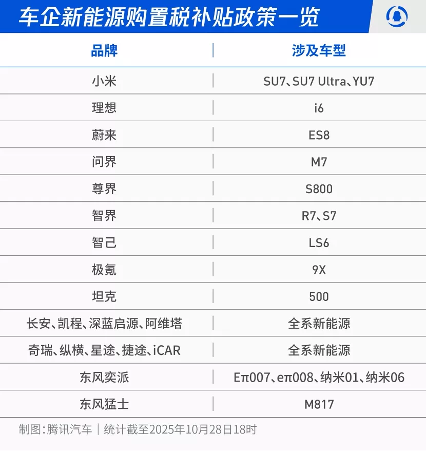 抓住最后两个月的机会,不少车企推出优惠方案,承诺客户只要年底前锁单,年前无法提车导致的购置税补贴损失,车企自己掏钱补上。截至10月28日,已经有包括小米、理想、蔚来等在内的20余个品牌推出购置税兜底政策。