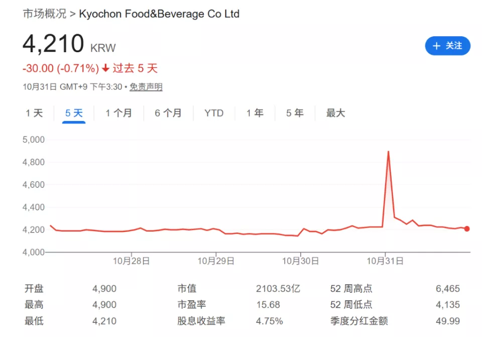 Chicken未上市,寻求短期收益的交易者将目光投向了其他相关公司。炸鸡连锁品牌Kyochon F&B