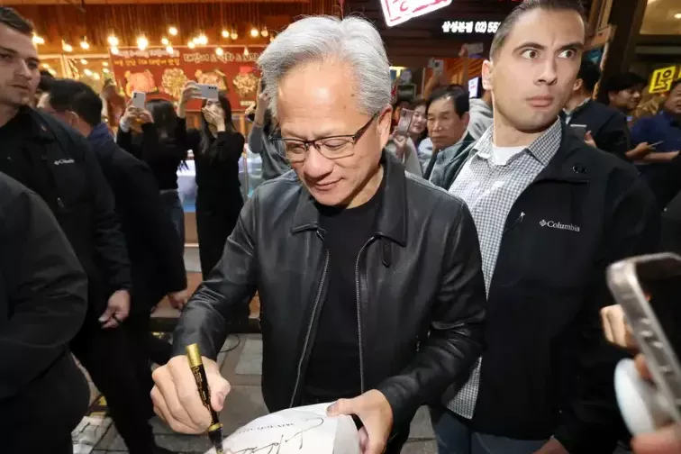 英伟达CEO黄仁勋在首尔与韩国商界领袖的一场炸鸡晚宴,意外点燃了韩国股市的“模因狂热”,部分相关股票一度飙升30%。