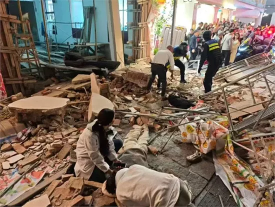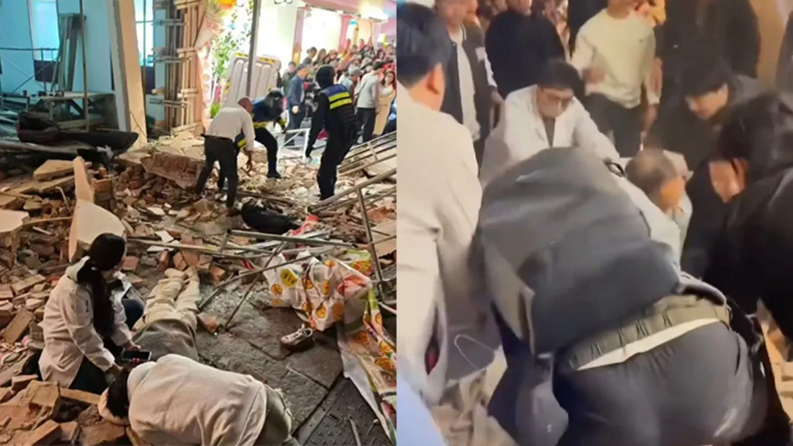 10月31日晚上,湖南省长沙市,潮宗街店面墙体倒塌,砸中路人。 pic.twitter.com/4RZGvnD4Vt