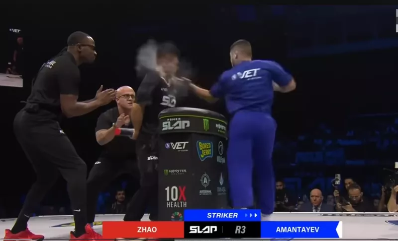 Slap”,原被寄望能以“中国功夫”震撼全场,却在赛中连挨3掌就当场倒地昏迷。这场比赛原本被包装为“硬气功vs.力量之战”,最终演变成中国选手惨败、哈萨克对手完胜的结局。
