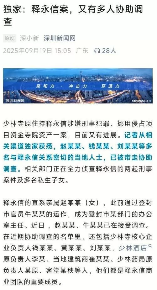 这一次释永信调查初步结果出来,很多网友震惊地发现,当地许多相关人士都遭到了波及,其中不少人被带走协助调查。