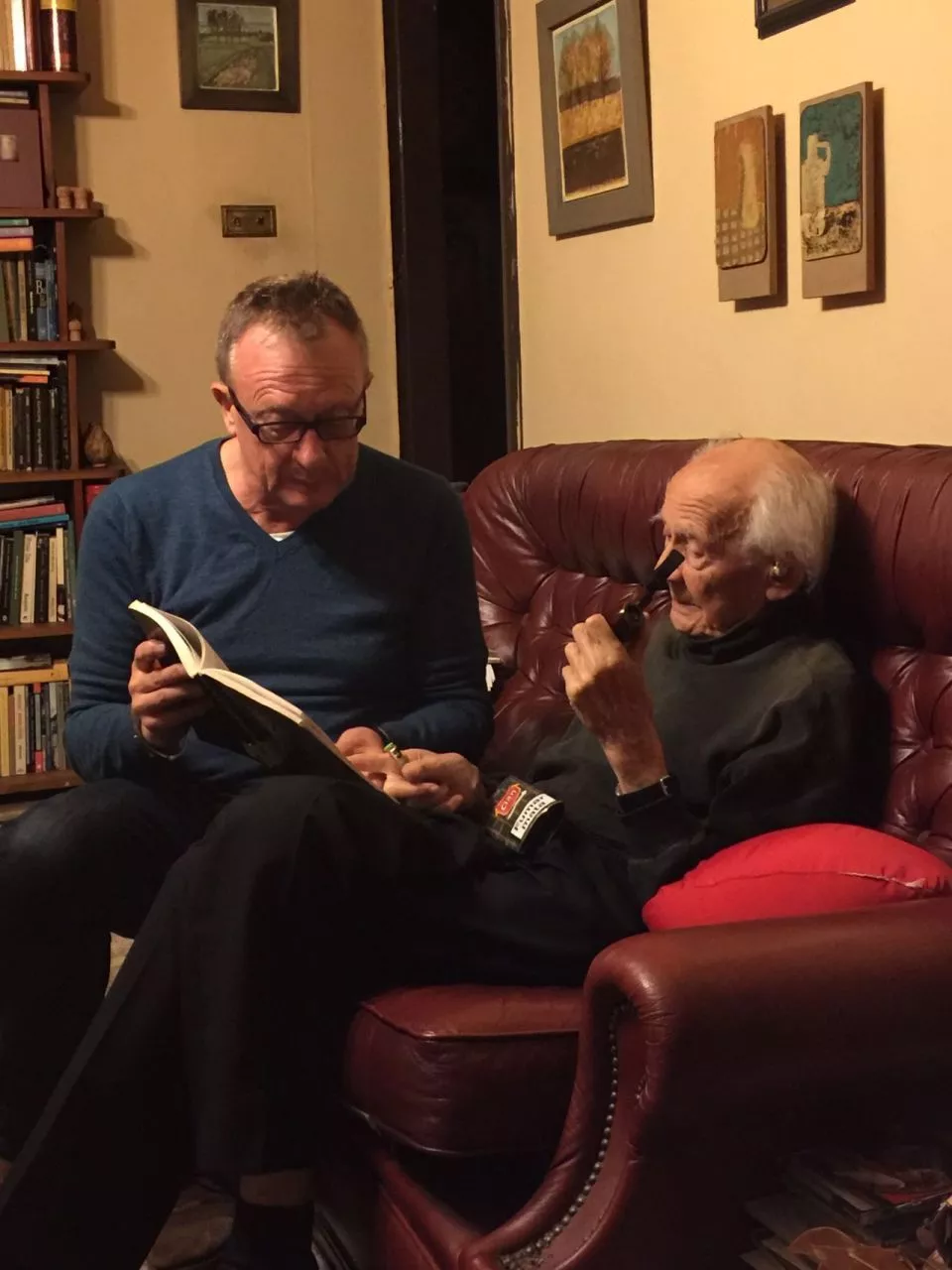 鲍曼的多年老友和研究者彼得·贝尔哈兹(左)每年都会与鲍曼一家住在一起一段时间