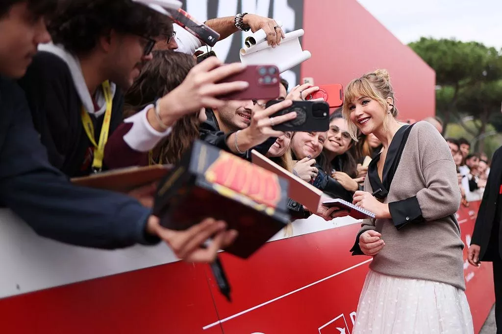 2025年10月20日,珍妮花罗伦丝(Jennifer Lawrence)出席第20届罗马电影节期间的红地毡活动。(Getty