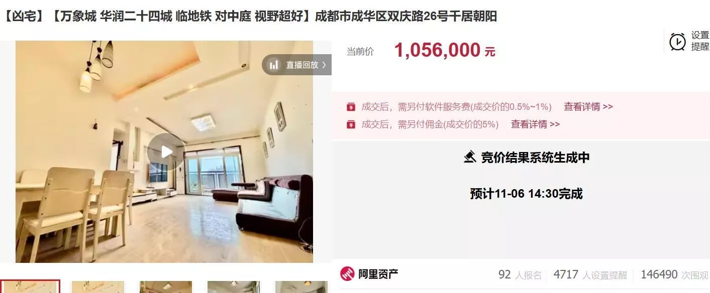 成都"凶宅"仅26万起拍终以105万成交 加价14次争破头