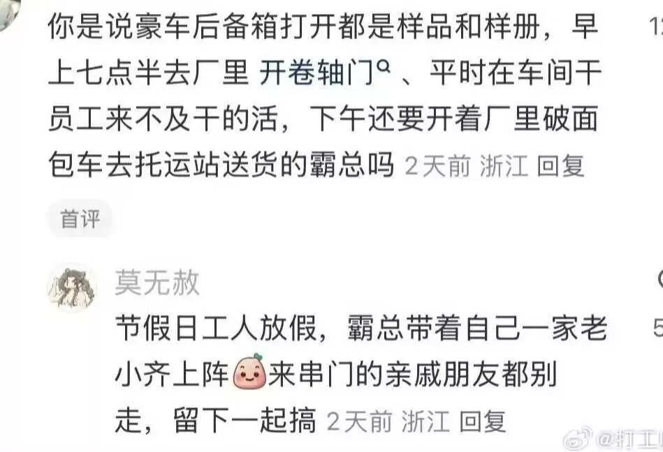有别于日常参与高端活动的京圈沪圈富二代,浙江厂二代的VLOG内容大概率就是早上七八点就去厂里开大门,一直待到晚上十一点厂里的车床都还没完全冷却。